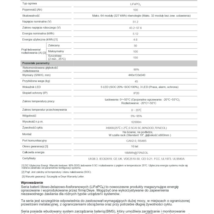 • Napięcie nominalne: 51,2 V
