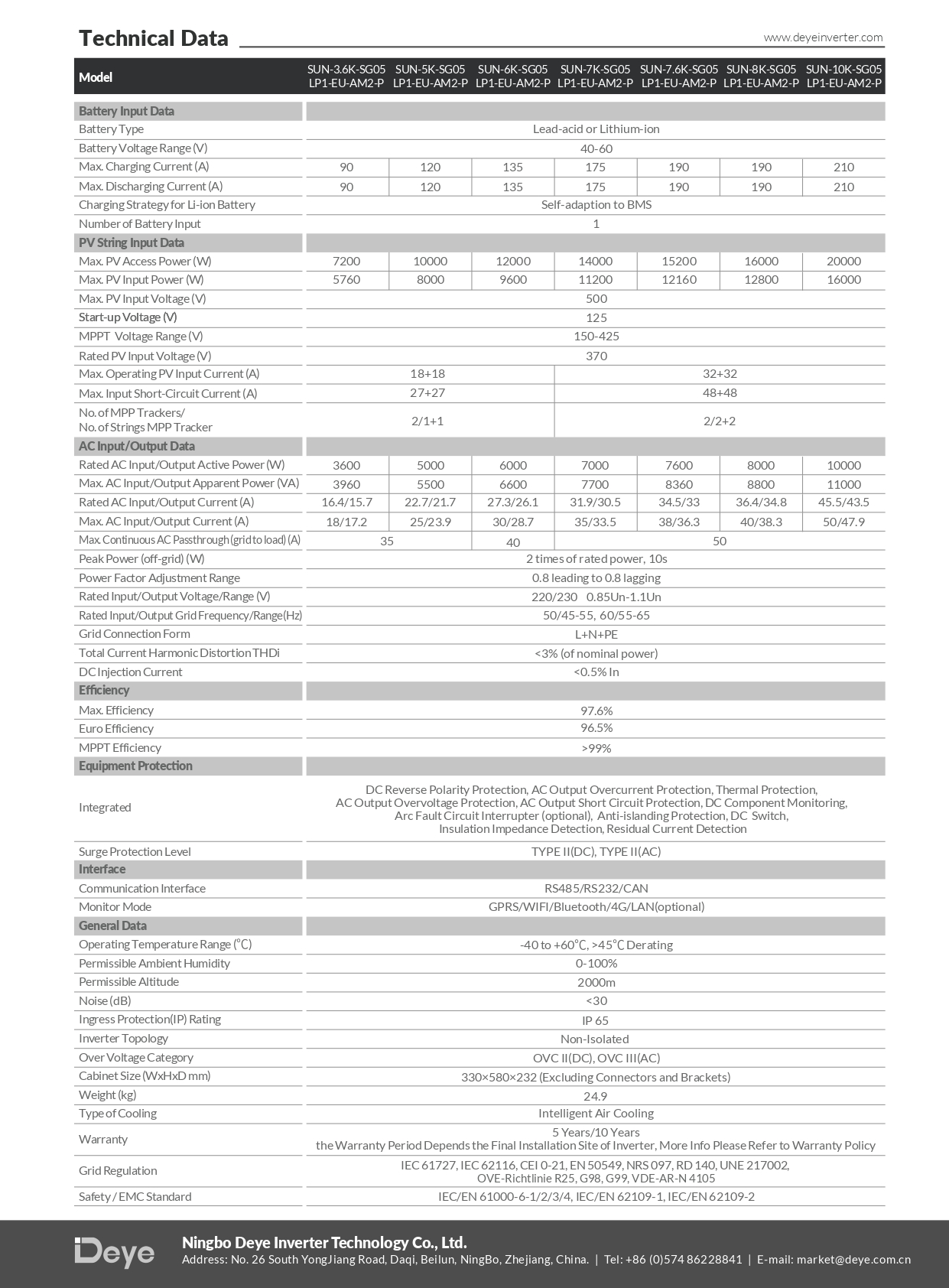 DEYE Falownik hybrydowy SUN-3.6K-SG05LP1-EU-AM2-P 1-fazowy