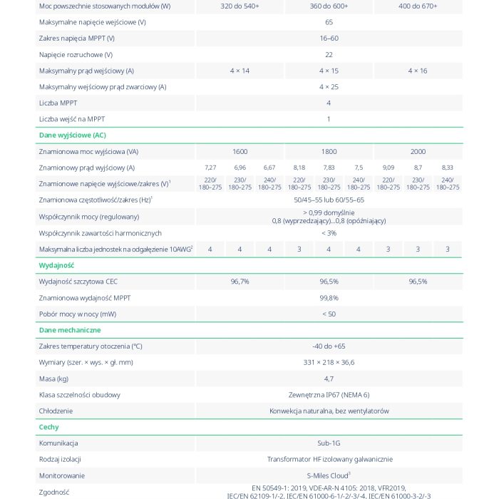 - Mikroinwerter o wysokiej mocy, osiąga do 1600VA mocy wyjściowej