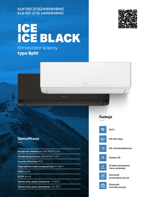 Zarówno biały, jak i czarny klimatyzator ścienny KAISAI ICE wyposażony jest w szereg funkcji dbających o wysoki komfort użytkownika. Jonizacja powietrza eliminuje z otoczenia cząsteczki roztoczy, pleśni, bakterii i wirusów, nawilża powietrze i daje przyjemne odczucie świeżości w klimatyzowanym pomieszczeniu. Funkcję oczyszczania wspiera dodatkowo filtr Bio HEPA, zatrzymujący cząstki zanieczyszczeń i drobnoustrojów. Tak zaprojektowane opcje w klimatyzacji pokojowej ściennej pozwalają zadbać o zdrowie mieszkańców. Istotne jest np. powstrzymywanie smogu, którego składniki – pyły zawieszone – są silnie rakotwórcze.